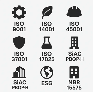 Conheça nosso assistente virtual especializado em esclarecer dúvidas sobre as normas ISO 9001, ISO 14001, ISO 17025, ISO 27001, ISO 37001, ISO 45001, SiAC/PBQP-H e ESG.